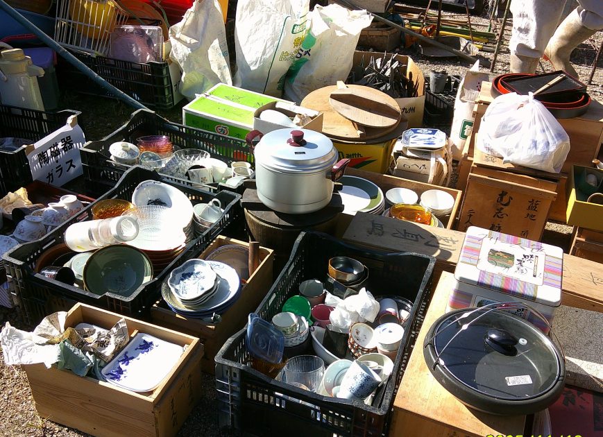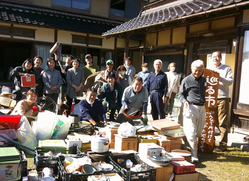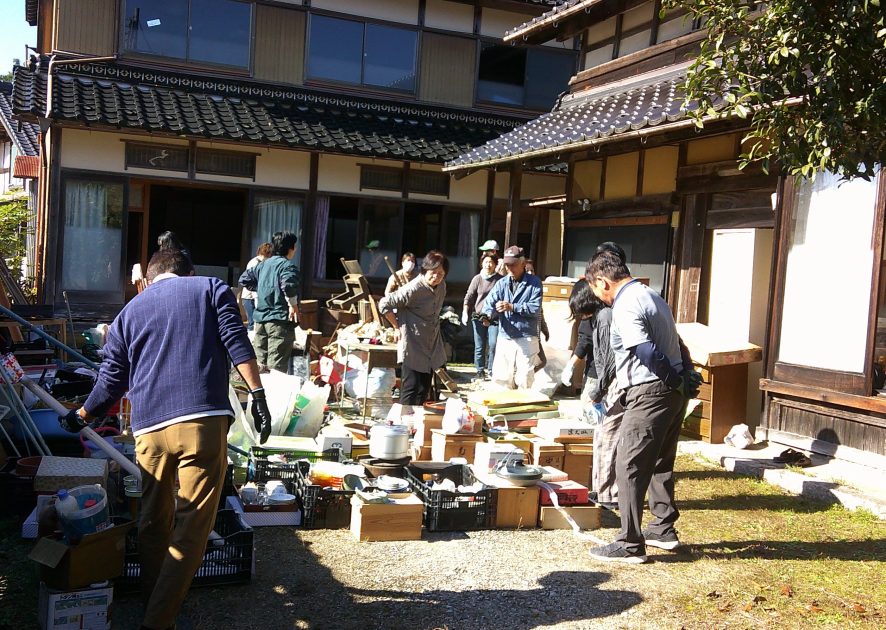 空き家掃除のボランティアを募り、家財や家具、食器などの片づけを手伝ってもらう、そしてほしい物や掘り出し物があったら自由に持って帰ってもらうイベントです。京丹後市地域おこし協力隊員の高木つららさんにお世話になりました。