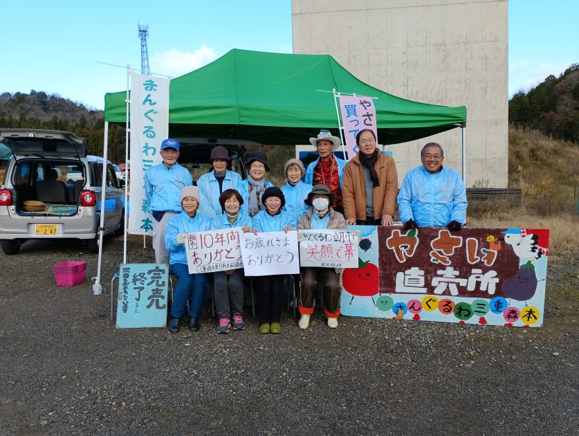 女性グループ「まんぐるわ三重・森本」(8人)が行う軽トラ朝市が、惜しまれながら10年の歴史に幕を下ろしました。